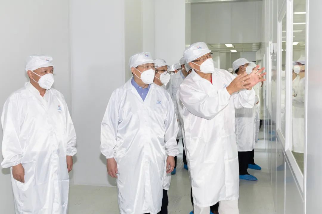 图丨龚正一行在积塔半导体董事长陈忠国等人的陪同下,视察积塔半导体生产线。